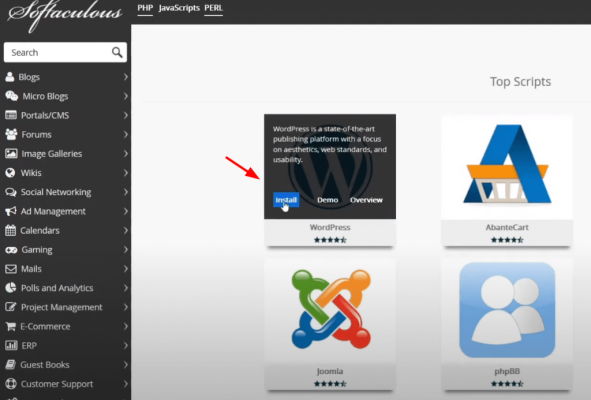 Bước 2: Cài đặt WordPress bằng Softaculous