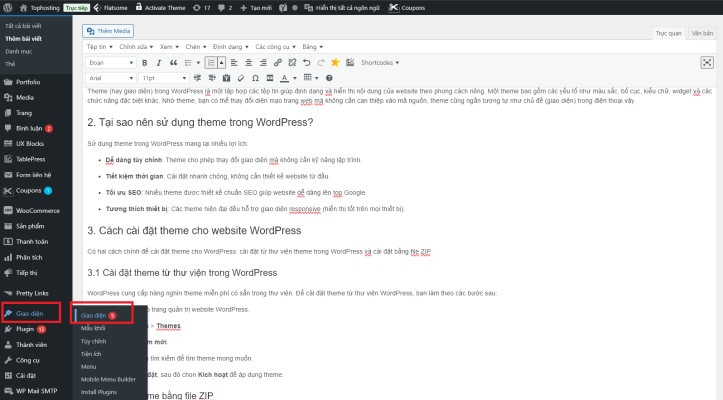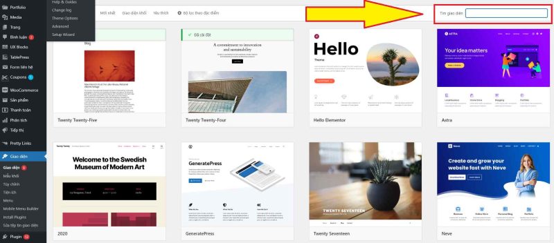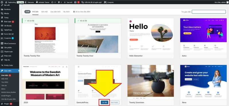 3.1 Cài đặt theme từ thư viện trong WordPress