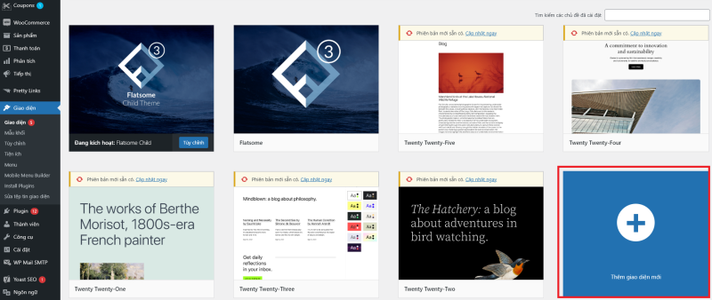 - Đăng nhập vào WordPress, vào Giao diện > Themes > Thêm mới.