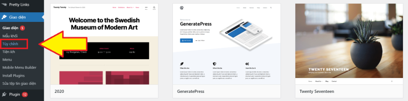 - Vào Giao diện (Appearance) > Giao diện (Themes).