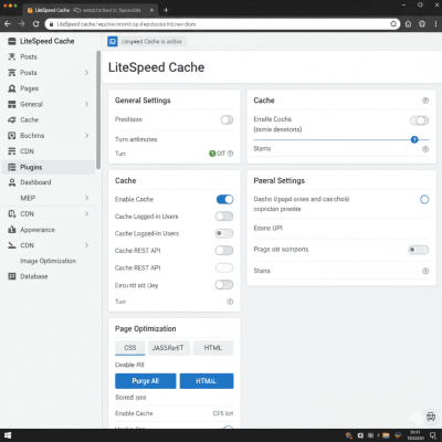[Hình ảnh: Giao diện plugin LiteSpeed Cache trên WordPress Dashboard